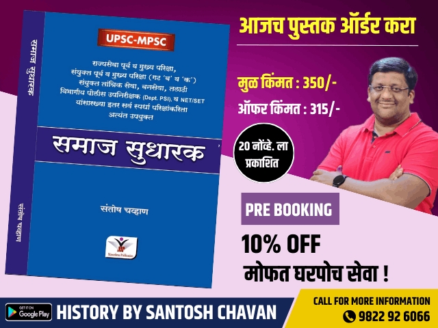 वैशिष्ट्ये 1) पुस्तकात एकूण 39 समाज सुधारक (एकूण पाने 216) आहेत. 2) पुस्तक खरेदी केल्यानंतर 7 दिवसांत आपण दिलेल्या पत्त्यावर उपलब्ध होईल. 3) पुस्तकाचे एकूण शुल्क : 350/- 4) पहिल्या 100 विद्यार्थ्यांसाठी 10% Discount आणि मोफत घरपोच सेवा दिली जाईल.